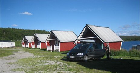 Boendet på Sandvikens fjällgård ligger utmed sjön Tjaktjaur och alldeles i närheten av servicehus med toalett och dusch. Nere vid sjön finns bastu.